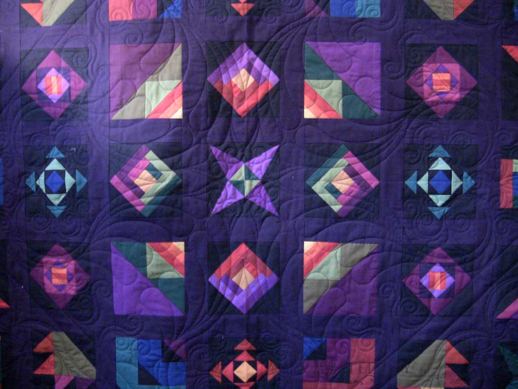 In the last part of this case study I showed you the motifs used in the two outer borders and the cornerstones. Let’s take a look at the center of the quilt. Be sure to click on these photos to see them larger so you can better see the quilting lines. Also, the colors are wonky in these photos. I have to dink with the colors a bit so you can see the stitching lines better.