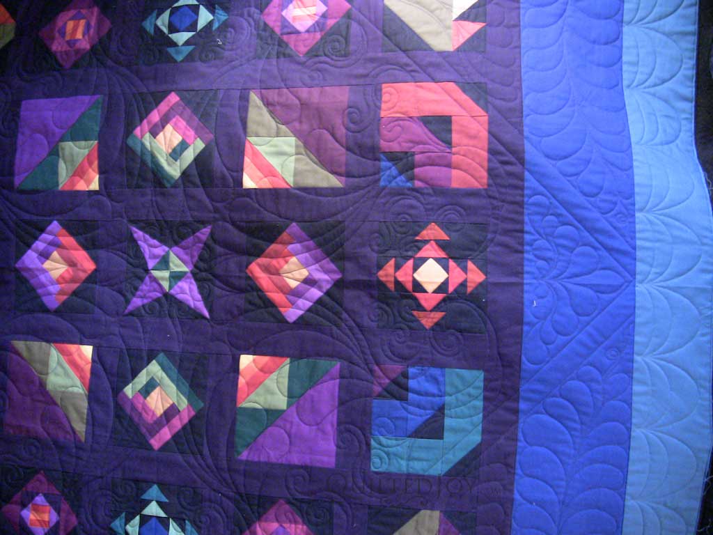 Since I’d decided to use place a large motif on point in the center of the quilt, it had to be a dense and intricate design. I thought about using the “Jamies Feather” block but I was concerned about how few quilting lines were in the center of this block. I really felt we needed to highlight the star in the center of the quilt with some quilting lines and the “Romancing Feathers” block used the center area better.