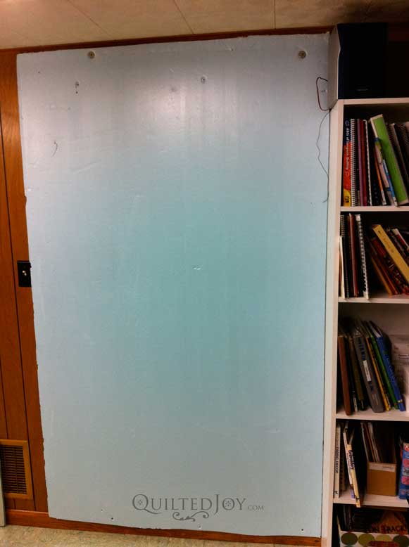I am in the process of completing the layout/design of my new home studio. We moved in August but I didn't move the sewing room until late September. One of the things I desperately needed in my new studio was a design wall. With a design wall you can place blocks up on the wall and step back to see if the color and placement is pleasing to your eye. I find it especially useful when making Tshirt quilts so I can be sure the overall design of the shirt is good. I also use the design wall to pin up tops from customers so I can stand and stare to get ideas on custom treatments that will work on their tops.