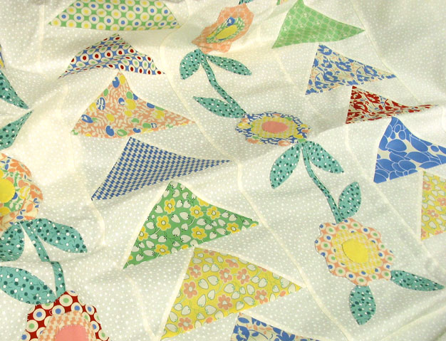 This week, I've got Joan's Layer Cake on the frame right now and by tonight I'll have her Flying Geese Garden loaded up. The Flying Geese are all made of 1930's fabrics and is a Quilt in a Day pattern. If you haven't checked out Eleanor Burns' Flying Geese rulers, you are missing out. They are fabulous and are incredibly helpful when you've got a ton of geese that need to be made.