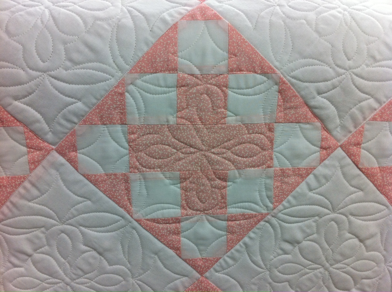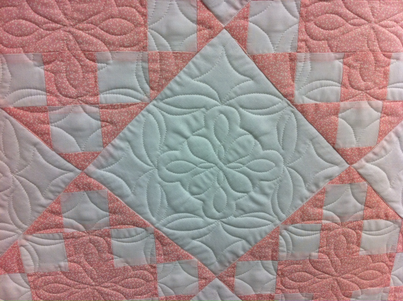 Isn’t this stunning? This is one of those quilts that starts off with a quilt top that doesn’t have a lot of zing in it. Then after it gets quilted it looks completely different!