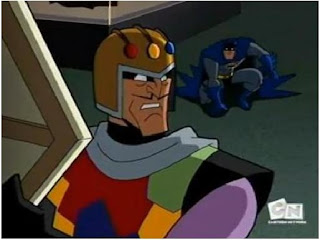 He has a mind-controlling helmet as his secret weapon. He can only see bright colors and at one point he drained Robin’s spandex outfit of all color! So he’s also got some sort of bleach ray. Here he is on the Cartoon Network Batman series.