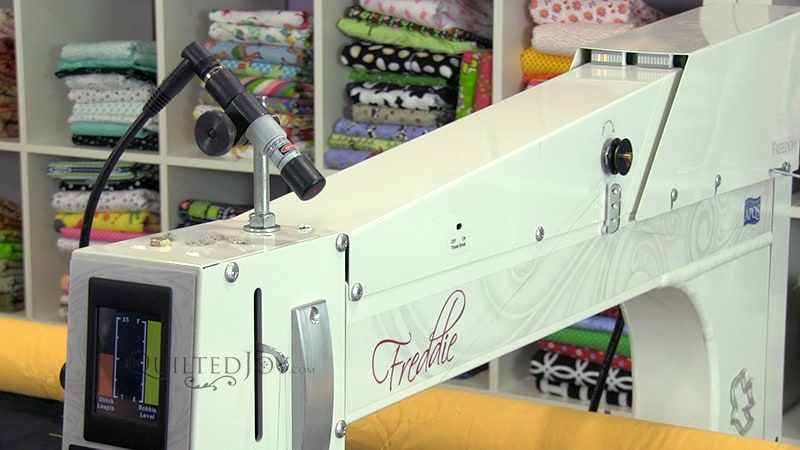 You may have seen a laser mounted to the back of a longarm machine when using a paper pantograph but...