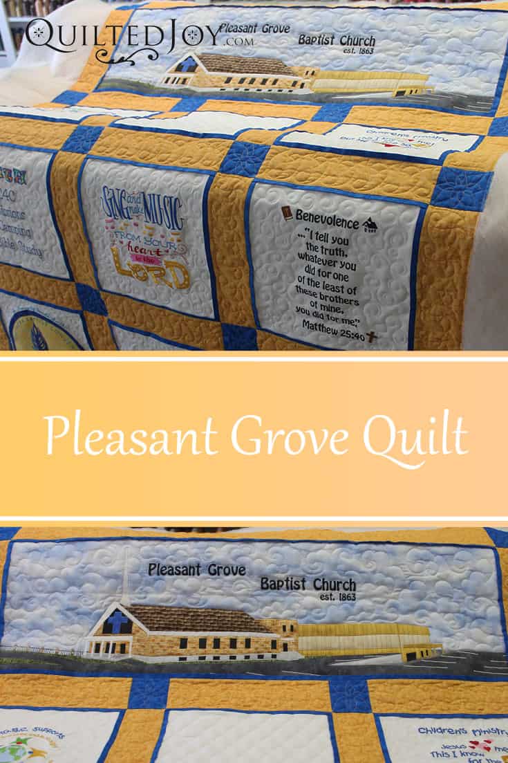 Several members of the Pleasant Grove Baptist congregation came together to make this lovely quilt for the church. Each lady...