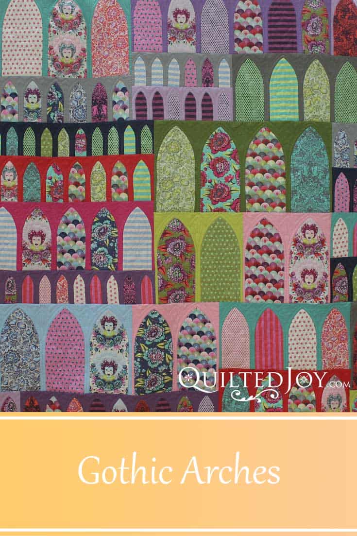 Kathy recently asked me to quilt this amazing top for her. The pattern is called "Gothic Arches", by Tula Pink....