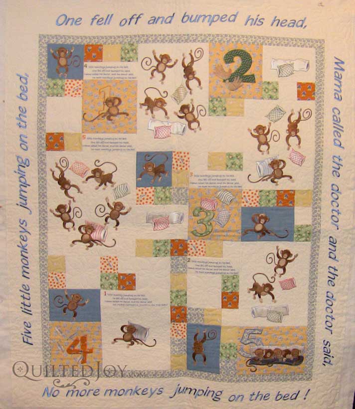 Okay, I've been stringing you on long enough! Here is a wide shot of Sandy's amazing 5 Little Monkey's quilt....