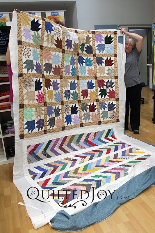 Susan pieced this top, a design called Four-Patch Frenzy, after watching a tutorial by Jenny Doan of Missouri Star Quilt...