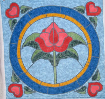This quilt was made by my client who also did the baby fish quilt. The stained glass design is an...