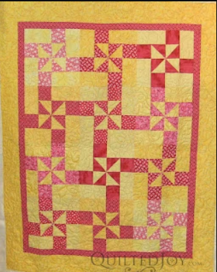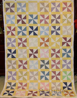 This is Katy's Pinwheel Quilt. She used a yellow fabric with small daisies in the sashing. I used that fabric...