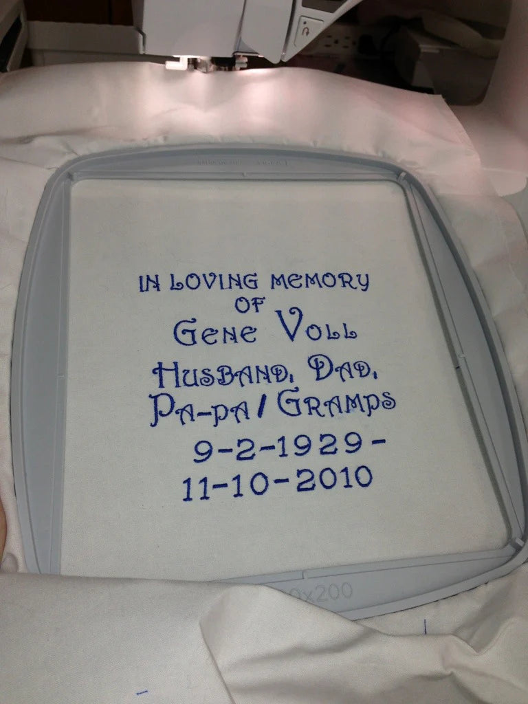 I'm working on a memory quilt right now. I'm down to the putting a label on and attaching the binding....