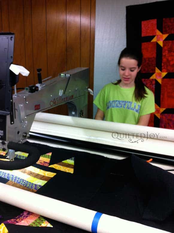 I’m Angela- Co-host of the Fons & Porter’s Love of Quilting PBS show. APQS Long arm Dealer and Educator. Triplet Momma. Designer. Thread Bimbo.