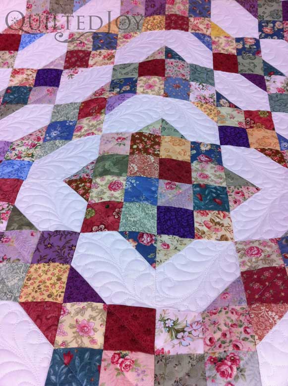 Jennie Beth's quilt now has feathers in the outside border and wavy interconnected lines through all of the one-inch pieces...