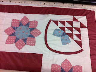 Did you see the photos in my last post about the maroon and blue dresden plate with basket blocks? This...
