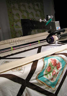 Suzanna adorned her neutral quilt top in such soothing colors. I love the color combination she chose with her fabrics....
