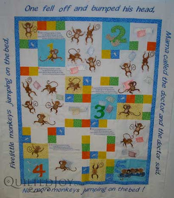 Okay, I've been stringing you on long enough! Here is a wide shot of Sandy's amazing 5 Little Monkey's quilt....