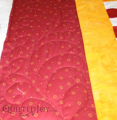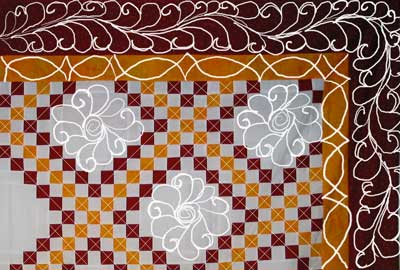 Jennie Beth's quilt now has feathers in the outside border and wavy interconnected lines through all of the one-inch pieces...