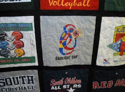 Here's Kris' T-shirt quilt: bound and ready to be delivered to her tomorrow! I did an overall meander that added...