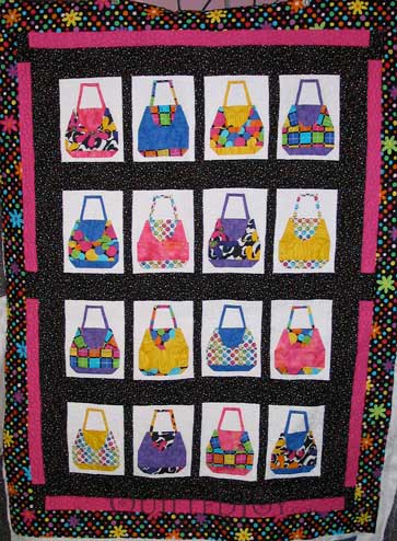 Sarah's purses quilt is finished! Yeah! I tried to take photos of the purses but the background filler on the...