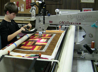 GooseyGirl is quilting her entry for MQX. I took the Intelliquilter off for her which is why the dock above...