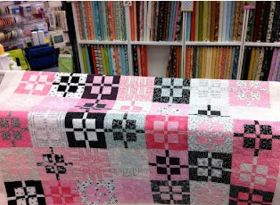 Isn't this Birthday Present Quilt wonderful? Pam made this with pink, black and white fabrics. I especially love the cow...