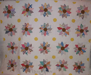 Take a look at this cheery 1930's Dresden Plate sampler quilt. Isn't it sunny and fun? Sandy made this one...