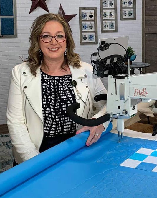 I’m Angela- Co-host of the Fons & Porter’s Love of Quilting PBS show. APQS Long arm Dealer and Educator. Triplet Momma. Designer. Thread Bimbo.