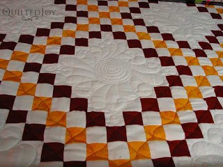 Jennie Beth's quilt now has feathers in the outside border and wavy interconnected lines through all of the one-inch pieces...