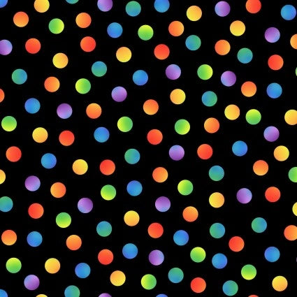 Electric Spots on Black 108" Wide Quilt Backing Fabric 3 Yard Quilt Fabric Back Pack