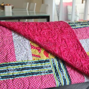 Hands On Piecing- This is an abbreviated class of the Candy Dreams quilt. Students will learn the strip pieced chevron technique which makes up the border. It is created using a Seminole piecing technique. Students will make this in columns for a great modern quilt while also learning how to use it for a border in a more traditional quilt setting. This class is for all levels.