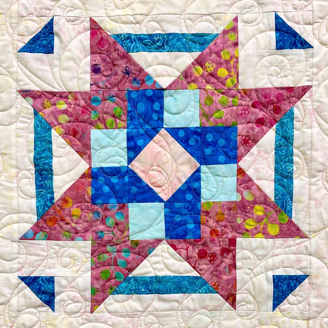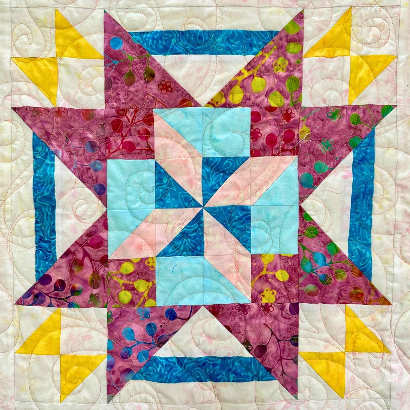 Featuring large, stunning 16” x 16” star blocks in luscious batiks, this 75” x 89” quilt is designed with innovative piecing techniques that make assembly a breeze—thanks to a little Quilt Fairy magic!