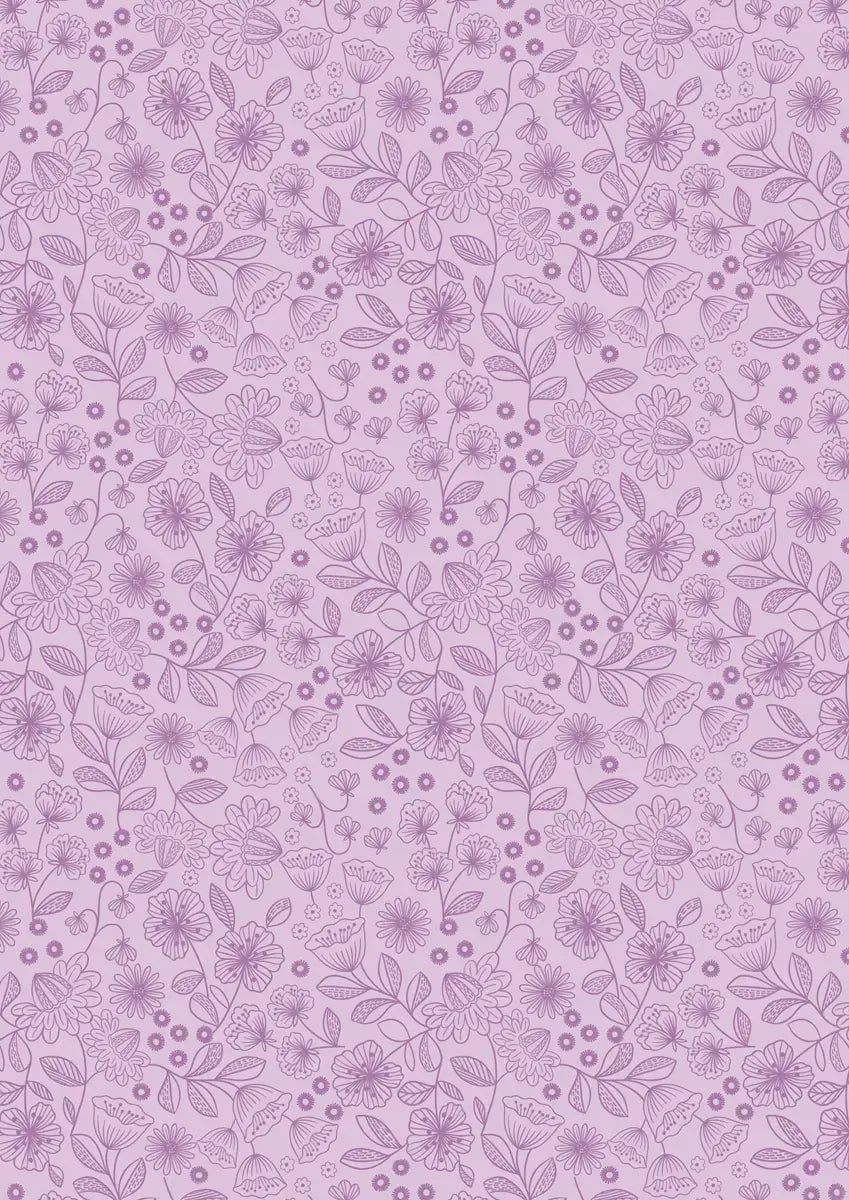 The Creative Landscapes Heather Tone on Tone Floral Fabric Yardage features a delicate two-tone floral design on a heather background, showcasing an array of flowers and leaves in varying shades of purple. The intricate pattern creates a harmonious and elegant look, perfect for a variety of crafting and sewing projects, adding a touch of nature-inspired beauty to any creation.