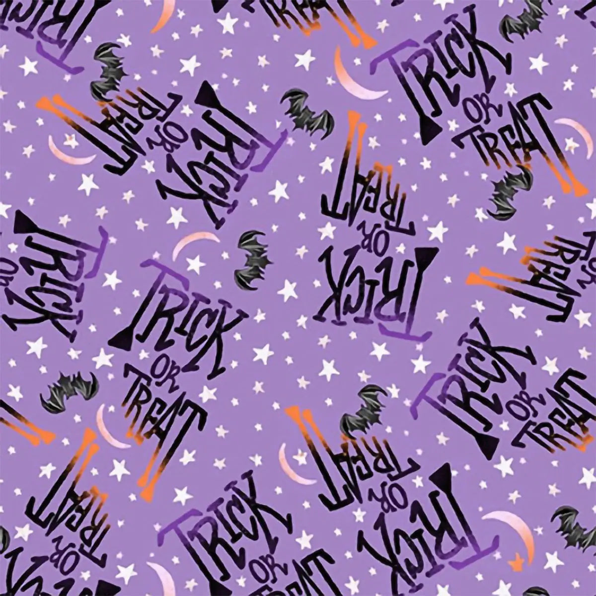 The Ghostly Greetings Purple Halloween Words Fabric Yardage from the Ghostly Greetings collection by Rose Halsey for Blank Quilting includes fun Halloween-themed phrases scattered across a vibrant purple base. Great for text lovers and festive seasonal accents in quilts or banners.