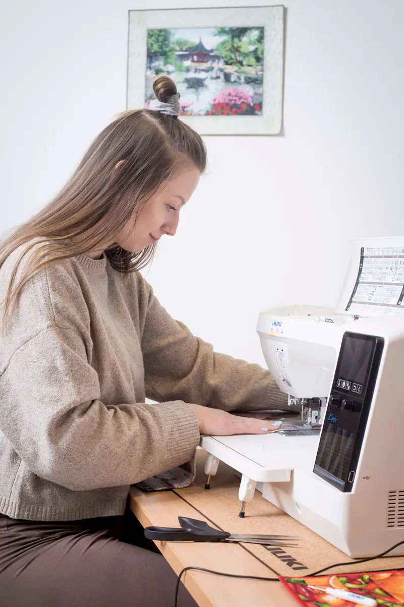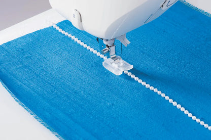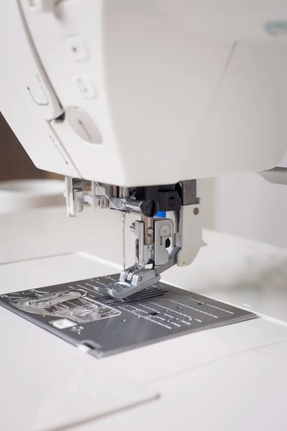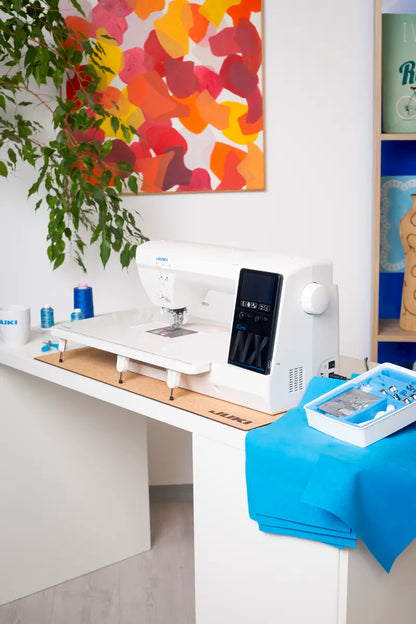 With a 12" throat space and an extension table, the Juki HZL-NX7 is perfect for those looking for a wide sewing area. Other sought-out features you'll love are needle up/down, thread trimming, drop-in bobbin, free arm, and speed control.