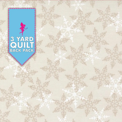 Winter Friends Snowy White Falling Snow 108" Wide 3 Yard Quilt Fabric Back Pack has tone-on-tone tan snowflakes with an overlay of white snowflakes designed by Deb Strain for Moda.