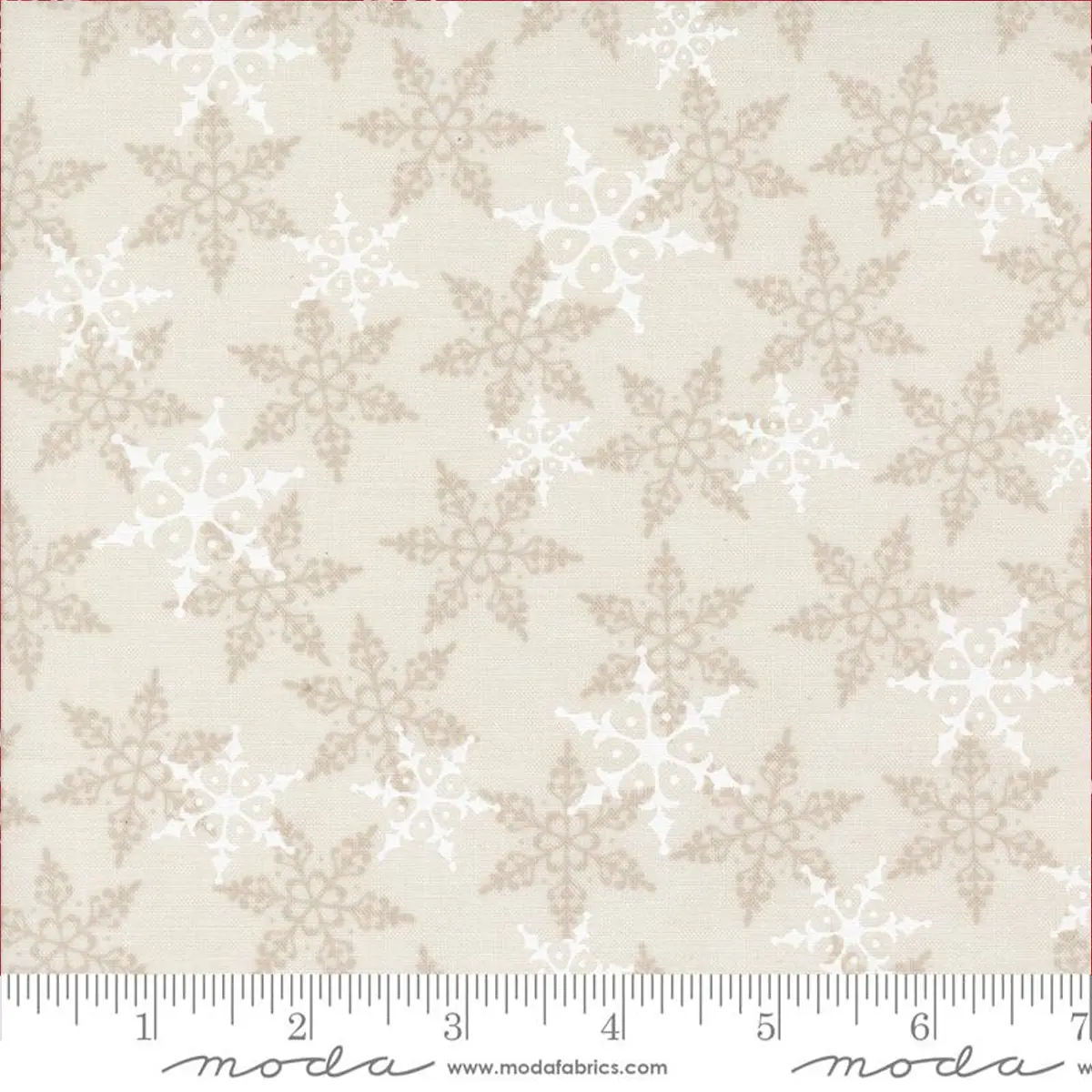 Winter Friends Snowy White Falling Snow 108" Wide Quilt Backing Fabric has tone-on-tone tan snowflakes with an overlay of white snowflakes designed by Deb Strain for Moda.